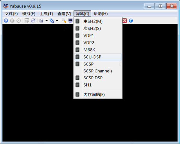 10、調試功能:主SH2(M)、次SH2(S、 VDPT、 VDP2、 M68K、 scu-dsp、 SCSP、 SCSP Channels、 SCSP DSP、 SHI、內存編輯(E)