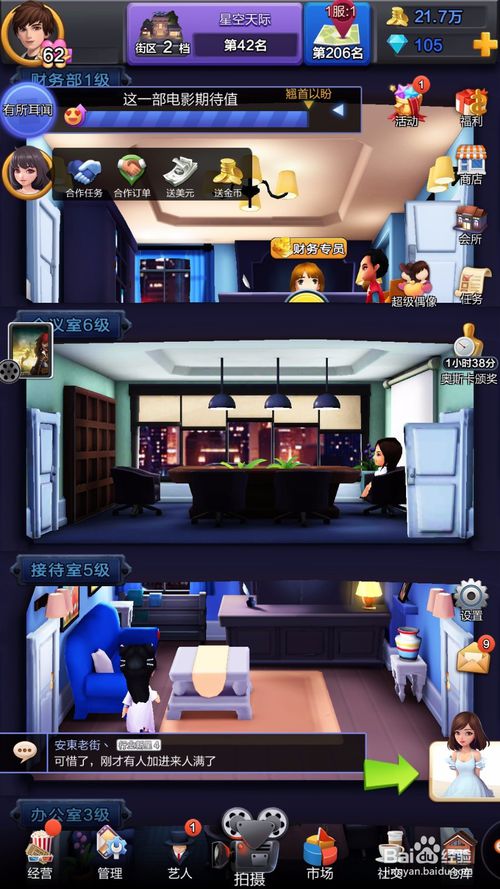 票房大賣王是一款經(jīng)營電影公司的模擬經(jīng)營游戲,您將扮演電影公司老板,從一家小影院開始你的奮斗之路。收集明星,拍攝電影,市場宣傳,奪取電影節(jié)獎項,成為億萬級粉絲的超人氣影視公司。參與影業(yè)比賽,從街區(qū)級一路奪冠,登頂?shù)钐眉?,拍出神話票房大片,收獲無數(shù)驚嘆贊美。