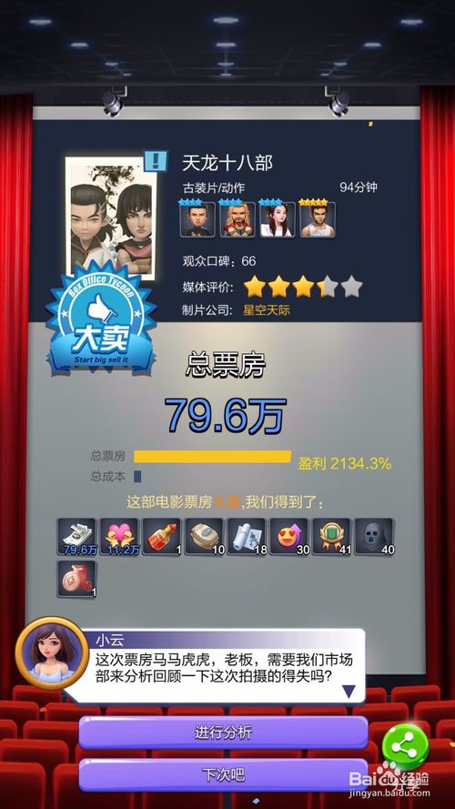 如果你在比賽三擋的,可以將劇本編輯下,可以提高票房和劇本內(nèi)容等。