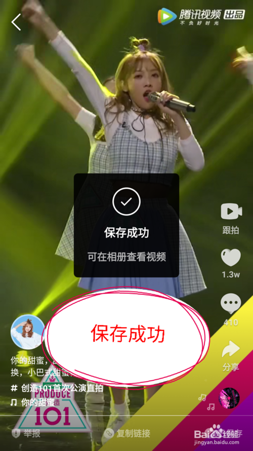 等到保存進度條百分百完成后,會提示保存成功可在相冊中查看視頻。