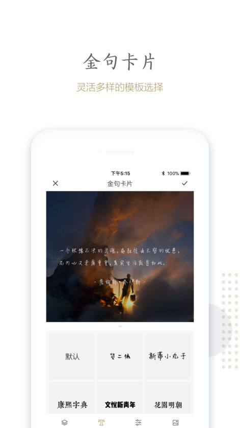 以優(yōu)美的圖文配圖形式分享至微信、qq或者微博等社交媒體。