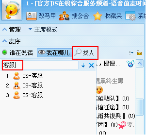 3、模糊找人 在頻道內(nèi)點(diǎn)擊左側(cè)頻道列表上方的找人,輸入馬甲就能查到在頻道內(nèi)的用戶