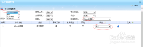 如何禁止iSpeak語音?(1)打開WFilter,在“監(jiān)控配置-- >封堵策略級(jí)別配置-- >編輯-- >iSpeak語音”。選擇“協(xié)議”,點(diǎn)擊“編輯”。將“iSpeak語音”狀態(tài)選為“禁止”,配置如下如所示: