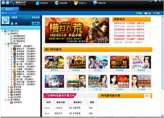 pptv游戲大廳是pplive專門為廣大游戲用戶推出的綜合游戲娛樂平臺(tái),為用戶提供最全面、最新潮的游戲娛樂服務(wù)。集熱門網(wǎng)頁游戲、大型客戶端網(wǎng)絡(luò)游戲?yàn)橐惑w,用戶只要登錄一個(gè)賬號(hào),就可以輕松暢玩pptv平臺(tái)上所有的游戲,體驗(yàn)充滿趣味與歡樂的游戲世界。