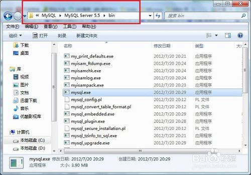 4、按“win+D”切換到桌面,找到mysql的安裝目錄,復(fù)制其地址,如下圖所示: