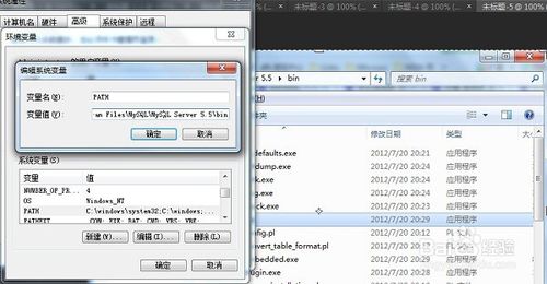 5、將mysql的安裝目錄地址復(fù)制到path中,用英文分號(hào)分割path先前的內(nèi)容,然后一直點(diǎn)擊確定,如下圖所示: