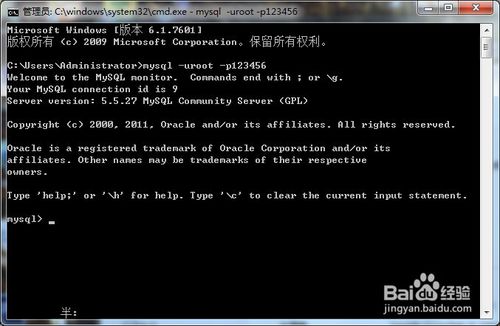 6、提示輸入密碼,輸入正確的密碼,進(jìn)入mysql控制臺(tái)