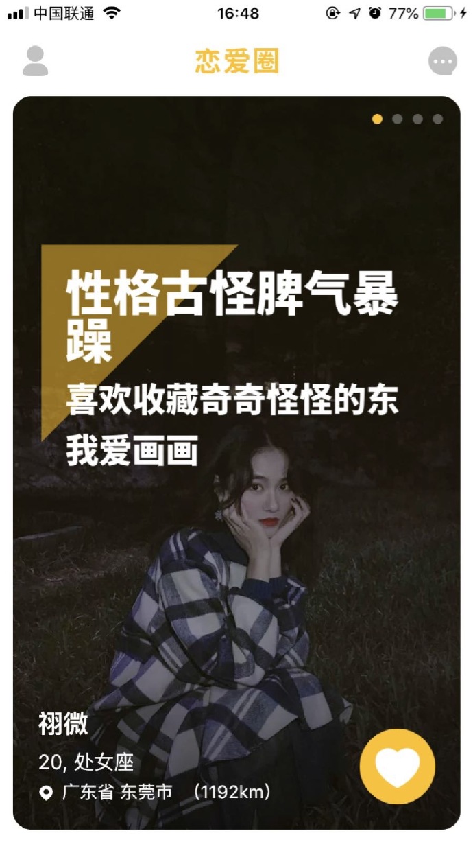 3、進入戀愛圈app后,可通過男生對自己所添加的標簽以及信息進行選擇,自主選擇是否聊天。