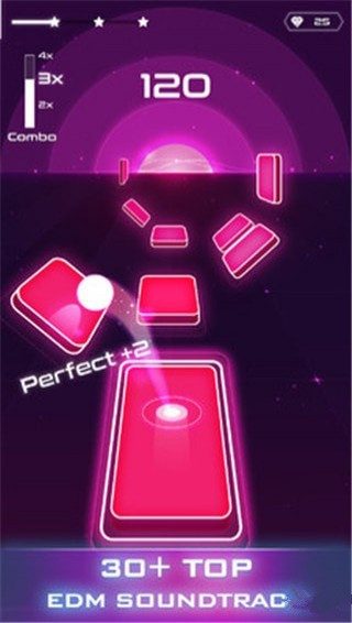跳舞音樂球游戲輕敲屏幕,控制旋轉(zhuǎn),跟著音樂盡量不要從瓦片上掉下來