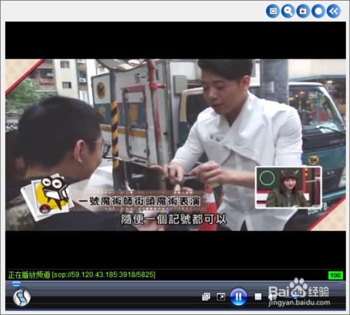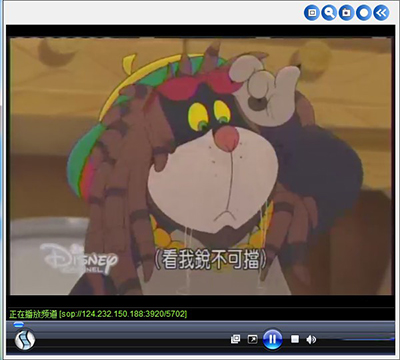 當然SopCast可以播放的臺遠不止頻道列表列出的這些,看見左上角的那個地址框了嗎?它就是用來輸入隱藏地址的,我們輸入CN卡通的地址sop://59.120.43.185:3918/1867 ,再點擊右方的小箭頭,CN卡通就開始播放了