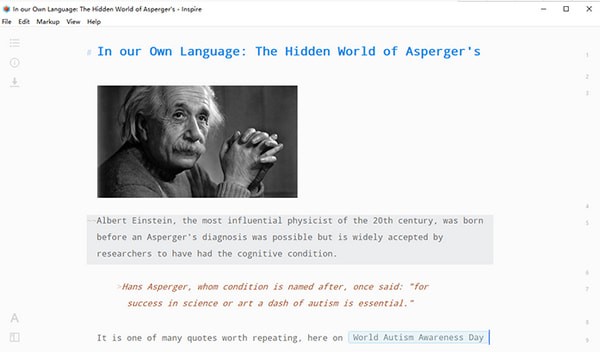 激發(fā)靈感,創(chuàng)造一個(gè)無干擾,輕松標(biāo)記的寫作環(huán)境,提高您的生產(chǎn)力。從簡(jiǎn)短的筆記到博客文章,再到偉大的小說,你關(guān)注的是內(nèi)容,而靈感則幫助其他內(nèi)容。啟發(fā)是專為最大的生產(chǎn)力。自由分心,重量輕,干凈的界面讓你專注于寫作。