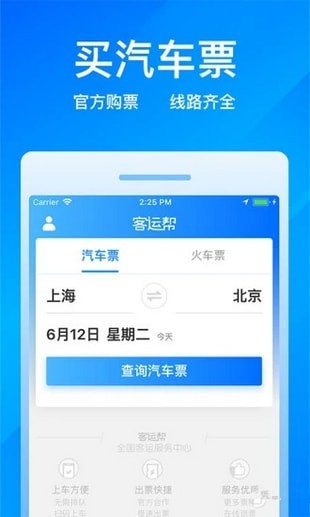 客運(yùn)幫app是一款專注于汽車票網(wǎng)上購票的App,并且為全國用戶提供專業(yè)的汽車票查詢及預(yù)訂服務(wù)。現(xiàn)在覆蓋全國19萬條線路,支持支付寶、微信、儲(chǔ)蓄卡、信用卡支付方式。可以在線查看汽車站地圖,車站直連取票機(jī)取票無需排隊(duì),幫助您便捷出行,輕松回家。