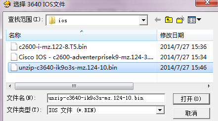 在IOS文件中瀏覽中選擇對(duì)應(yīng)的3640的系統(tǒng)IOS文件后點(diǎn)擊確認(rèn)。(IOS文件可以在網(wǎng)絡(luò)中自行下載)