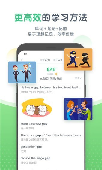 每個(gè)單詞搭配多個(gè)符合中學(xué)生真實(shí)情境的短語(yǔ),結(jié)合幽默風(fēng)趣的插畫配圖,有趣又有料,背單詞效率倍增!