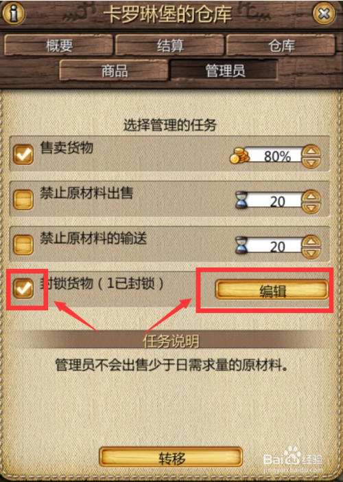 3.然后勾選封鎖貨物,點(diǎn)擊后邊的編輯按鈕