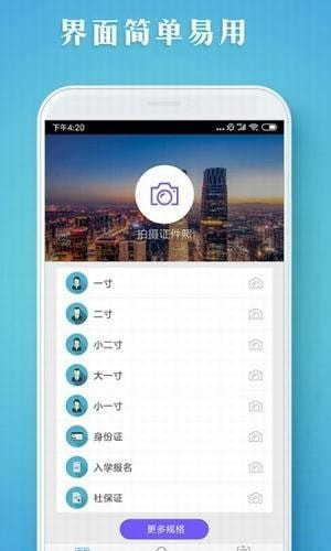 證件照智拍app支持從各國(guó)簽證到各類報(bào)名考試在內(nèi)的400多種證件照規(guī)格。四六級(jí)考試、計(jì)算機(jī)考試、國(guó)考、社保、各國(guó)簽證照