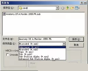 1.用Vobsub_Subresync打開(kāi)srt字幕,左上save as...,彈出另存框,下面保存類(lèi)型下拉,選*.sub,保存