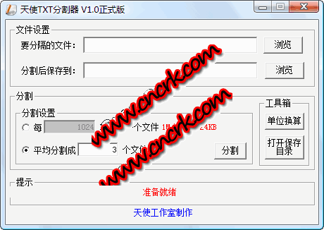 天使文本文件分割器小巧方便,功能強(qiáng)大,有多種分割模式。分割數(shù)度快,智能判斷一句結(jié)束,還有工具箱進(jìn)行單位換算