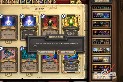 6.然后點(diǎn)擊新建卡組,之后就會提示你要不要將剪切的卡組生成,選擇是,就能把我們在盒子上復(fù)制的卡組直接生成了。