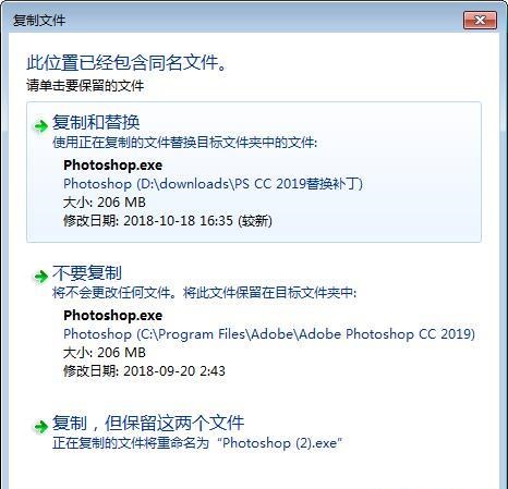 5、打開替換破解補丁Photoshop.exe,將補丁復制到安裝目錄下,默認安裝目錄 C:\Program Files\Adobe\Adobe Photoshop CC 2019