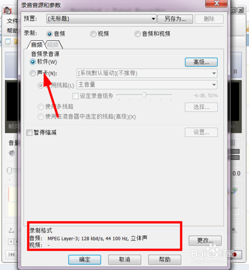 4.我們可以設(shè)置他的相關(guān)設(shè)置,如聲音mp3的格式等,一般我們選128kb就可以了;