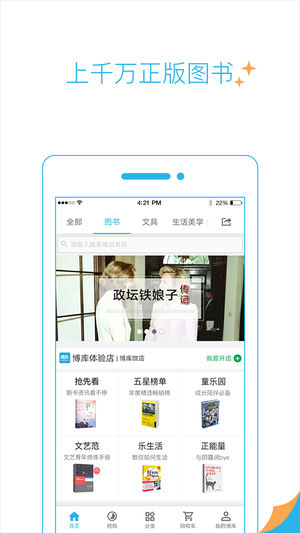 1、新華書店旗下知名品牌,品質(zhì)保障。精選百萬種正版圖書,驚喜低價(jià)優(yōu)惠。2、特色店鋪經(jīng)營(yíng),輕輕一點(diǎn),即可開啟屬于自己的私人書店。
