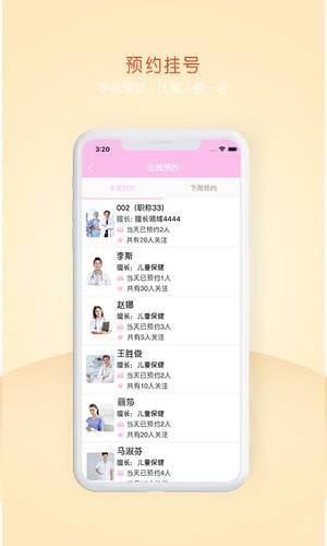 6、保健咨詢,婦兒保app為家長(zhǎng)提供預(yù)約功能,根據(jù)兒童不同的情況預(yù)約不同的專家醫(yī)生;