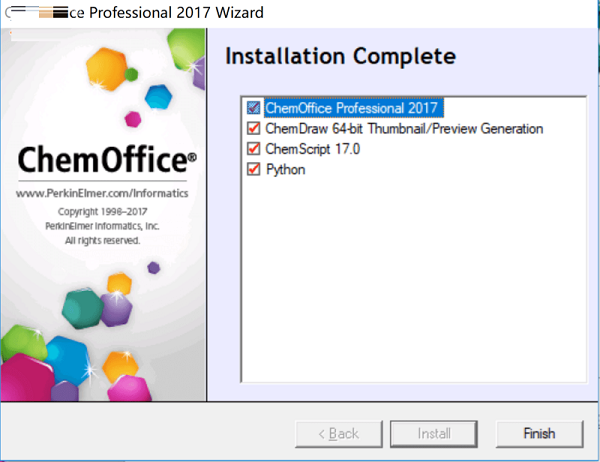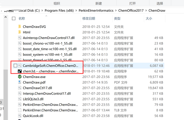 9、安裝完成后,把dll補丁CambridgeSoft.ChemOffice.ChemDrawExcel.LibChemDrawWrapper.dll和破解補丁chem3d.--.chemdraw.--.chemfinder.--.chemfinderforoffice-patch.exe復制到安裝目錄"C:\Program Files (x86)\PerkinElmerInformatics\ChemOffice2017\ChemDraw\"。不需要替換