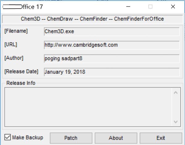 10、運行安裝目錄的破解補丁chem3d.--.chemdraw.--.chemfinder.--.chemfinderforoffice-patch.exe,點patch完成破解
