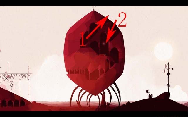 獲得該寶石的方法就是先按照如下圖箭頭1所指的方向上去,到建筑外邊,