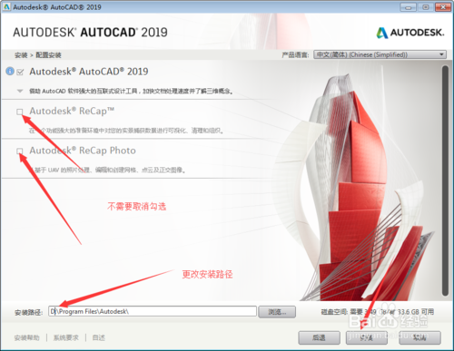 選擇安裝程序,如果只需要主程序可將其它兩項(xiàng)勾選取消,更改文件安裝路徑C盤(pán)為D盤(pán),這個(gè)路徑的選擇相信大家都應(yīng)該知道是什么意思了吧,不多說(shuō),最后點(diǎn)擊安裝,如圖所示。