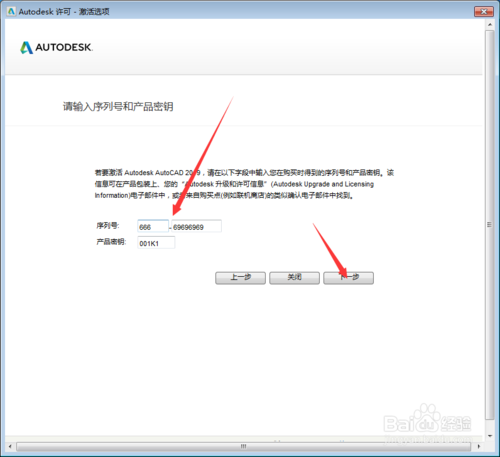 輸入產(chǎn)品序列號(hào)666-69696969,產(chǎn)品密鑰為001K1,并點(diǎn)擊下一步,如圖所示。