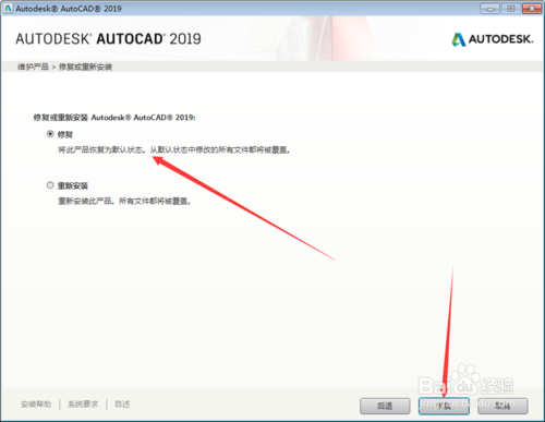 點(diǎn)擊修復(fù)或重新安裝后選擇默認(rèn)修復(fù)選項(xiàng)并點(diǎn)擊修復(fù)開(kāi)始修復(fù)過(guò)程,如圖所示。