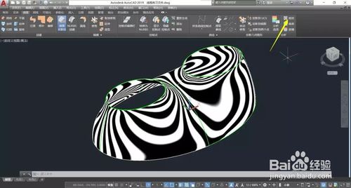 將輔助曲面進(jìn)行隱藏,再利用三維鏡像命令將曲面進(jìn)行鏡像,然后用分析斑紋命令,檢查曲面的連接情況。