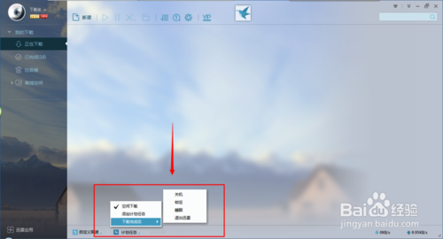 “正在下載”、“已完成”、“垃圾箱”、“離線空間”。