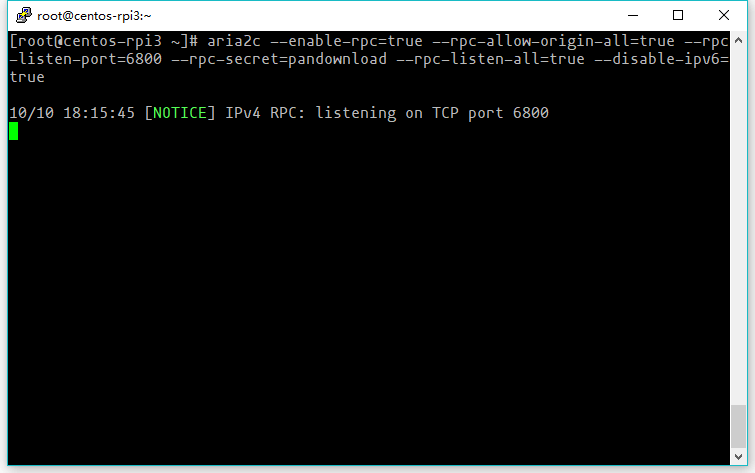 aria2c --enable-rpc=true --rpc-allow-origin-all=true --rpc-listen-port=6800 --rpc-secret=pandownload --rpc-listen-all=true --disable-ipv6=true