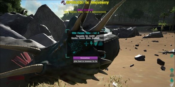 需要注意的是我們要保證一直有食物投放給恐龍,馴服槽才能一直增加,而昏迷槽則要我們不斷的投放黑色的果子來增加昏迷時(shí)間,如果昏迷槽清空之后我們?nèi)匀粵]有馴服恐龍的話,就代表著馴服失敗,注意黑色的果子恐龍是不會(huì)自己吃的需要我們強(qiáng)行讓它吃下去