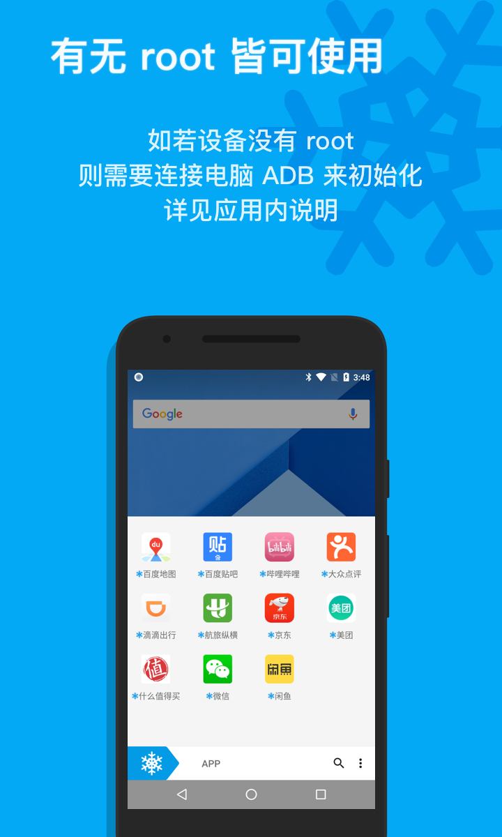 已經(jīng)Root的設備下載后可以直接使用;沒有Root的設備,請按教程連接電腦使用adb激活一次,即可永久使用,重啟無需再次激活。