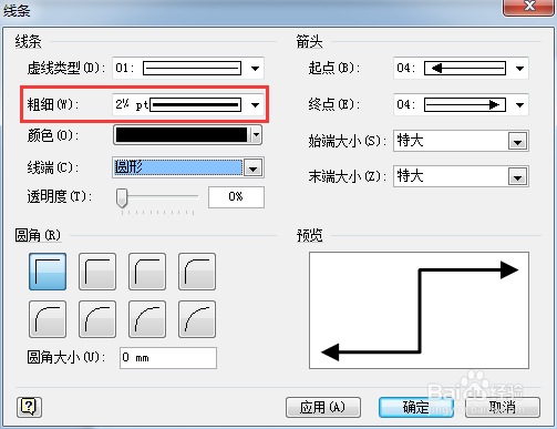 通過線條對話框設(shè)置線條粗細。