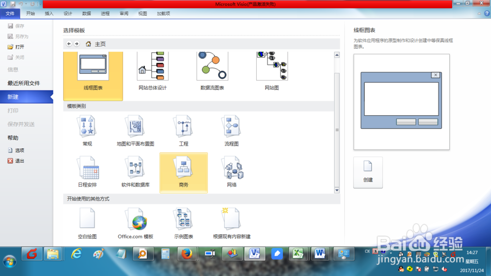 點擊【文件】菜單,再選擇【新建】,然后點擊【商務(wù)】