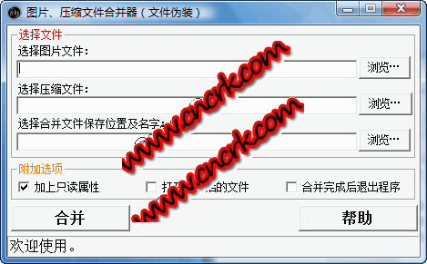 文件合并器(文件偽裝器)特點(diǎn):看似一張圖片,其實(shí)包含了其它文件資料!把合并后的圖片上傳到空間,可另存為下載下來后將jpg格式改為rar則可用你所添加的rar壓縮包資料。