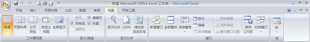 “視圖”工具欄:將光標(biāo)移動(dòng)到“視圖”的位置,右擊鼠標(biāo),我們就能看到“工作簿視圖”、“顯示/隱藏”、“顯示比例”、“窗口”、“宏”。