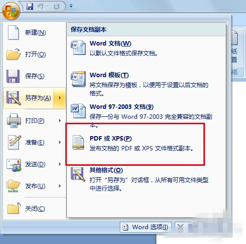 Word 2007將文檔另存為PDF格式的方法。