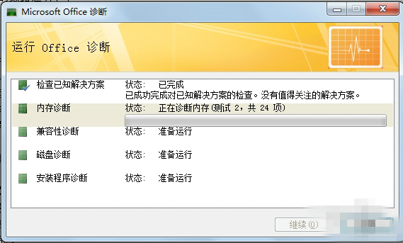 ·彈出診斷界面,單擊繼續(xù)按鈕開始。