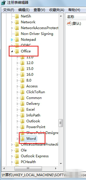 ·依次雙擊打開“Software”->“Microsoft”->“Office”->"Word"