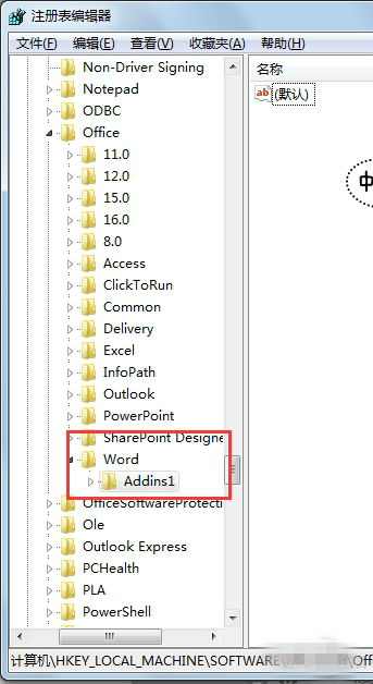 ·將“word”文件下的Addins(放word加載項(xiàng)的)重命名為Addins1,鼠標(biāo)左鍵在空白區(qū)域左擊一下就保存了,退出注冊(cè)表,重新測(cè)試一下,是不是完美解決了。