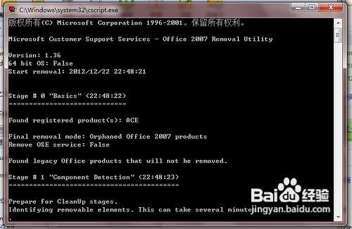 此時(shí)會(huì)跳出一個(gè)命令行的界面,在這里軟件開始它的卸載進(jìn)程,這需要等待一段時(shí)間,當(dāng)卸載完成會(huì)有一個(gè)提示。