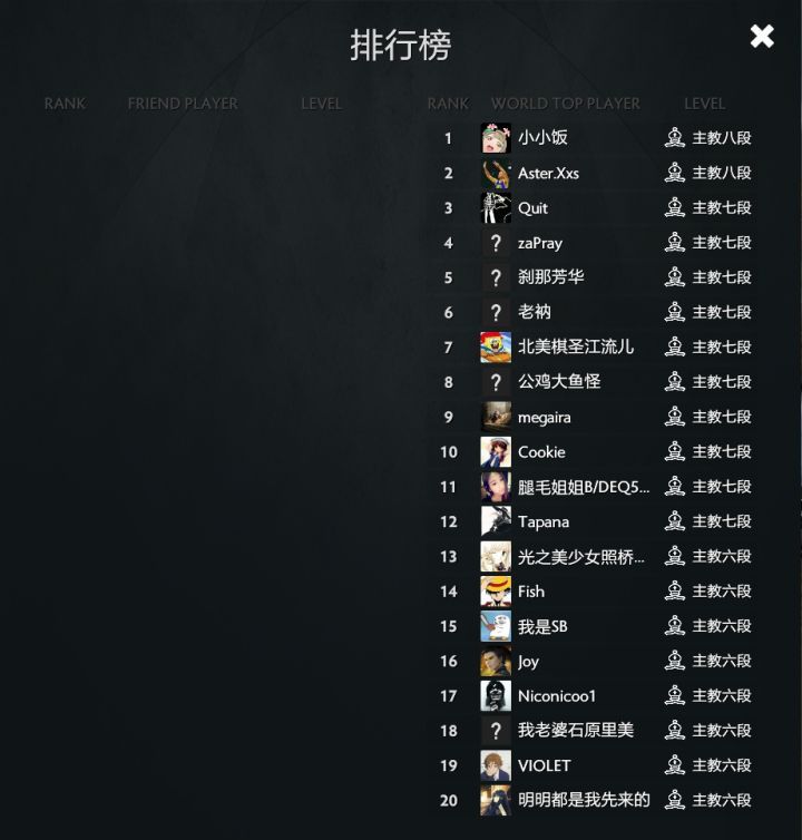 下圖可以在屏幕最右邊看到,騎士三段和迷之棋手為棋手段位,綠條和百分數代表剩余血量,FAILED代表血量為0,已經失敗。