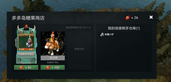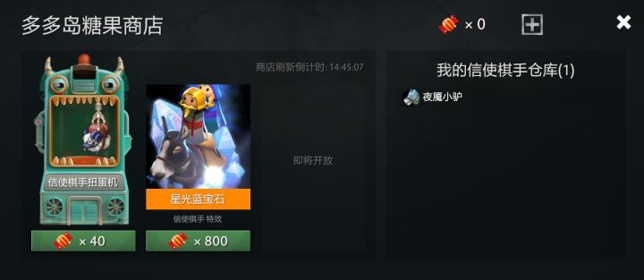 最右側是信使棋手倉庫,玩家通過每日的對弈,可以獲取不定數目的糖果(每日上限為10個)使用糖果可以換取信使棋手皮膚和特效,分別需要消耗數量不等的糖果。