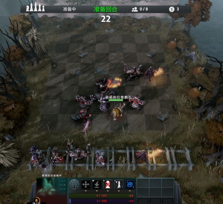 刀塔自走棋將參加游戲的8位玩家劃分在8塊不同的棋盤上,通過每回合抓取旗池中的棋子,挑選搭配出不同的棋子組合,并與玩家和AI(野怪)對抗,獲取金幣,購入棋子,不斷強化自己的組合來獲得勝利。刀塔自走棋的玩法類似與War3的RPG地圖軍團TD,以及前段時間OB打得火熱的忍法戰(zhàn)場。很容易上手,也容易迷上這款游戲。